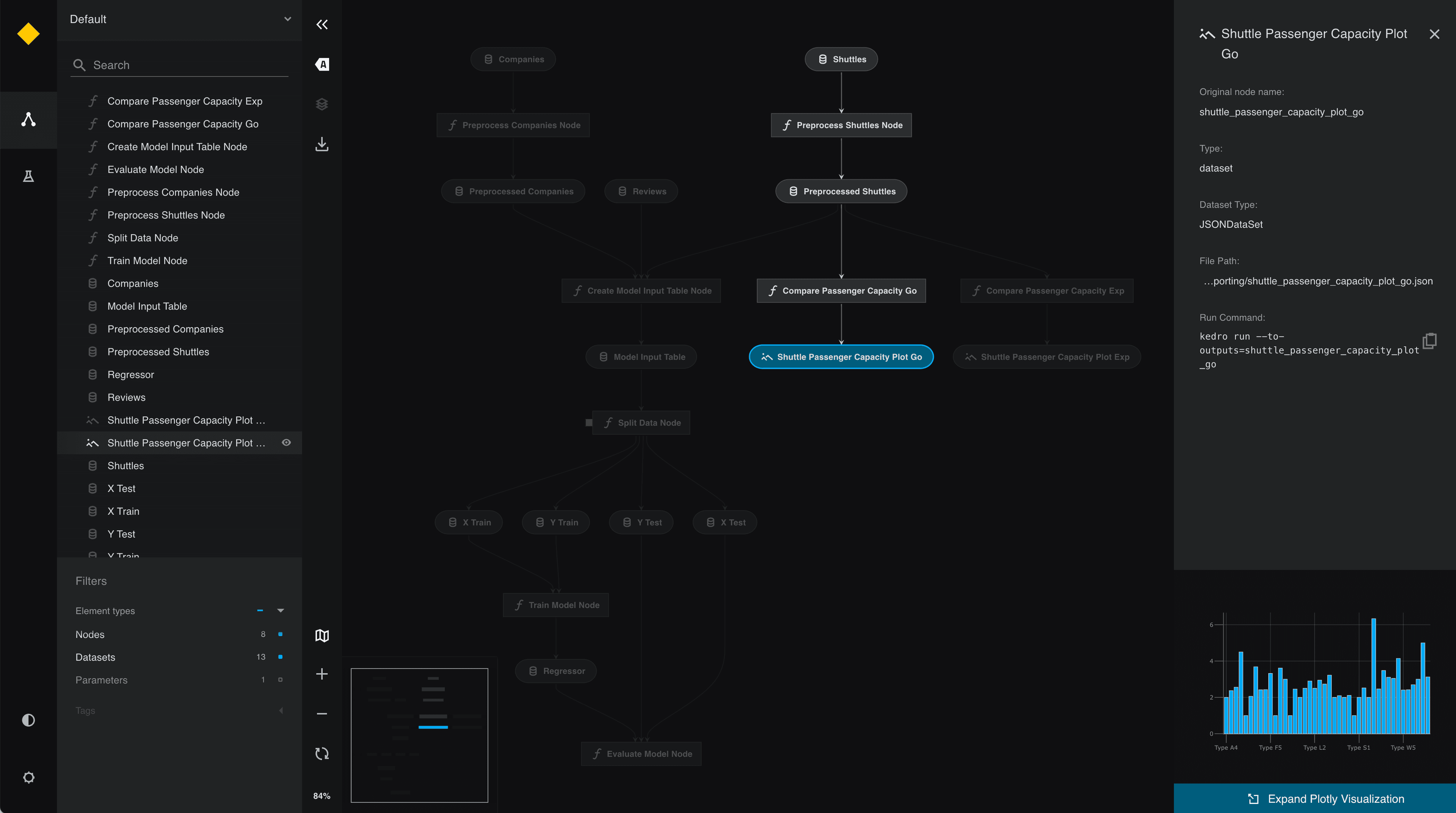 Pipeline slicing—running a specific subset of nodes within your pipeline—has long been available through the Kedro CLI. Now, we’ve supercharged this popular feature by integrating it directly into Kedro-Viz. With this enhancement, you can visually slice your pipeline, and Kedro-Viz will automatically generate the corresponding CLI command for the selected slice. This makes it easier than ever to execute a subset of your pipeline. Learn more in our short YouTube tutorial about pipeline slicing.